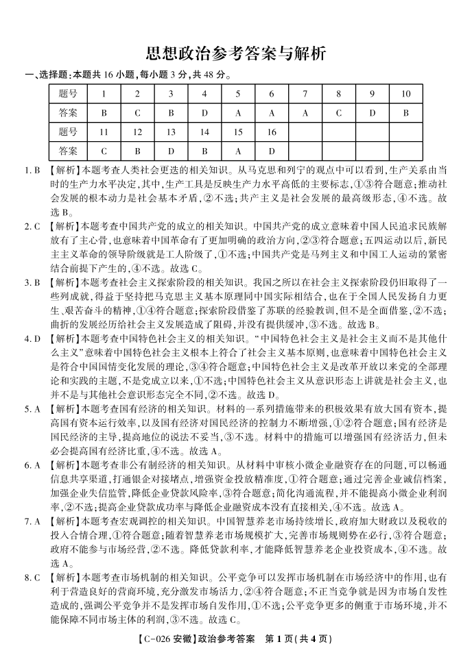 政治答案·2025年11月高三期中联考.pdf