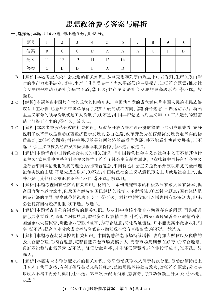 政治答案·江西省九校重点中学2026届高三年级第一次联合考试.pdf
