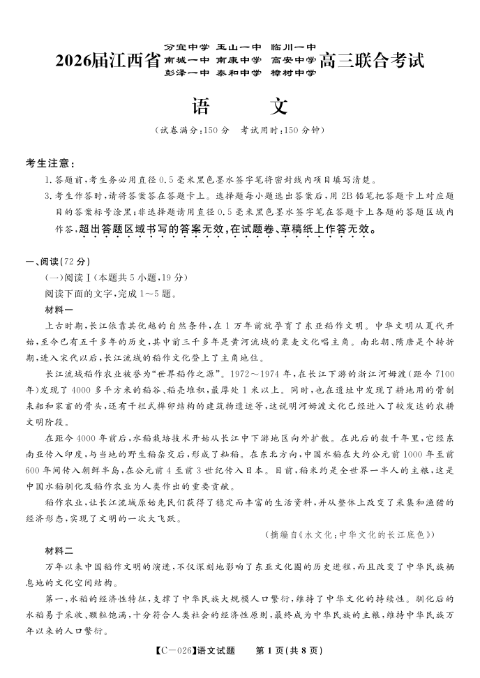 语文·江西省九校重点中学2026届高三年级第一次联合考试.pdf