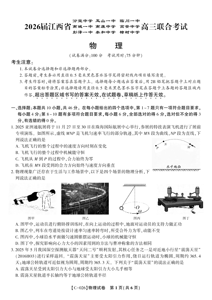 物理·江西省九校重点中学2026届高三年级第一次联合考试.pdf