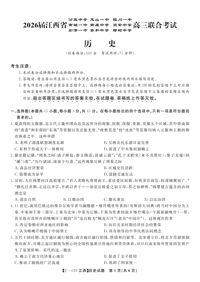 历史·江西省九校重点中学2026届高三年级第一次联合考试.pdf