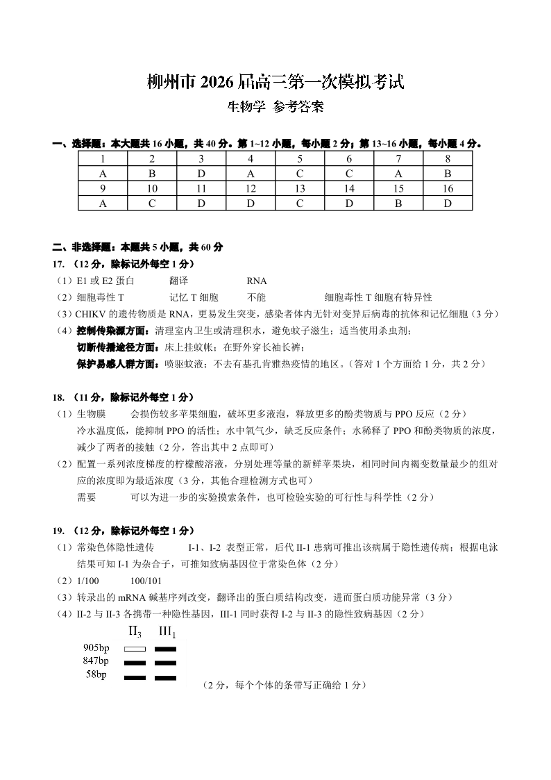 广西柳州市2026届高三第一次模拟考试生物答案.pdf