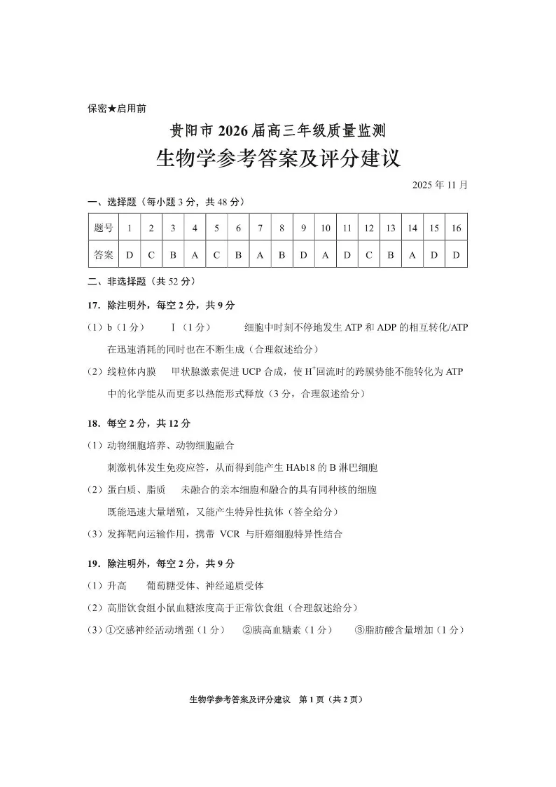 贵州省贵阳市2026届高三年级质量监测生物答案.pdf