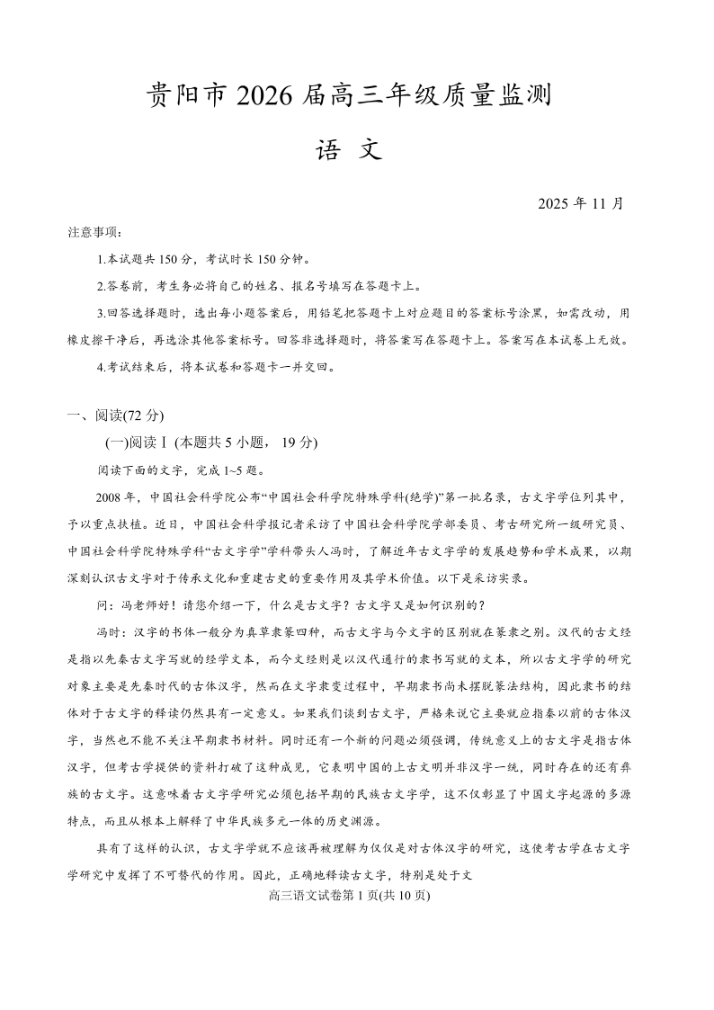 贵州省贵阳市2026届高三年级质量监测语文.pdf