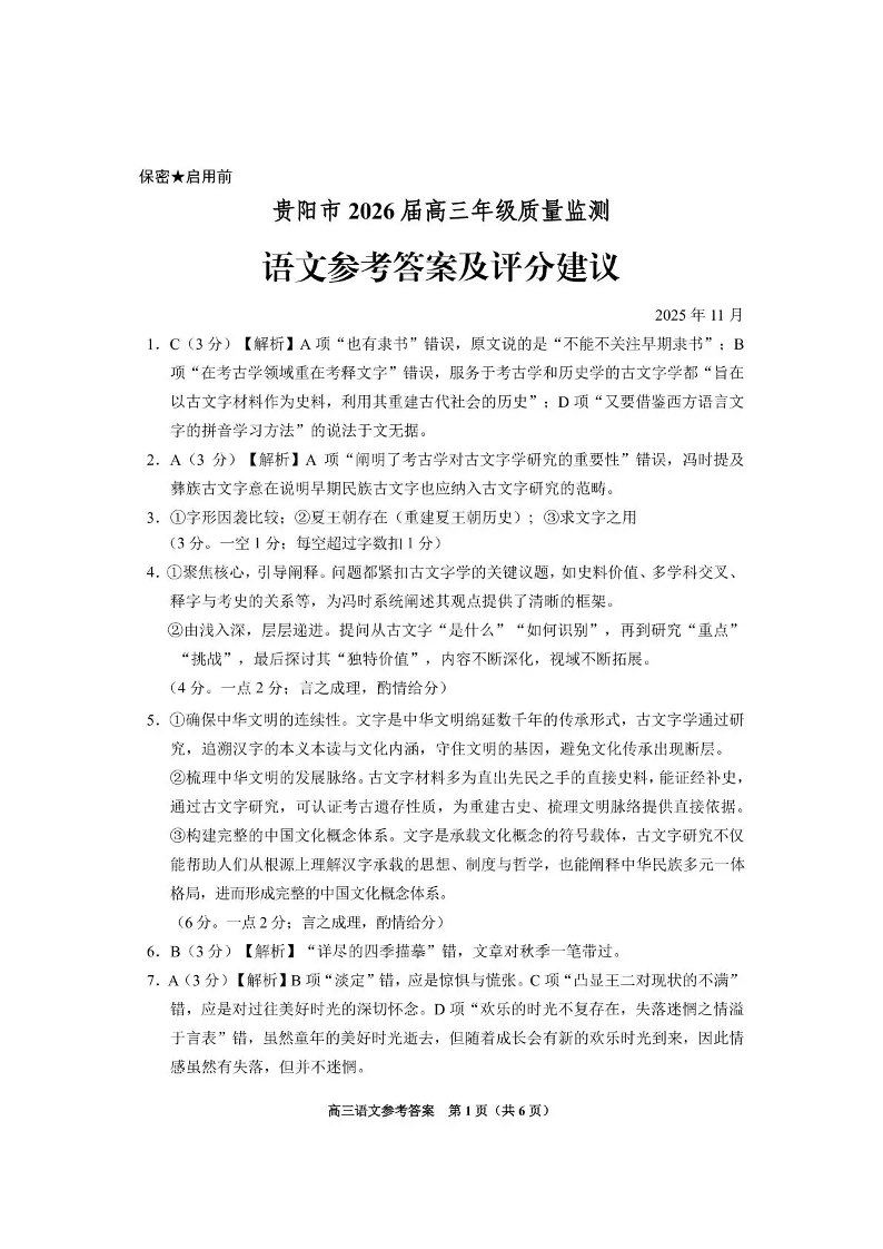 贵州省贵阳市2026届高三年级质量监测语文答案.pdf