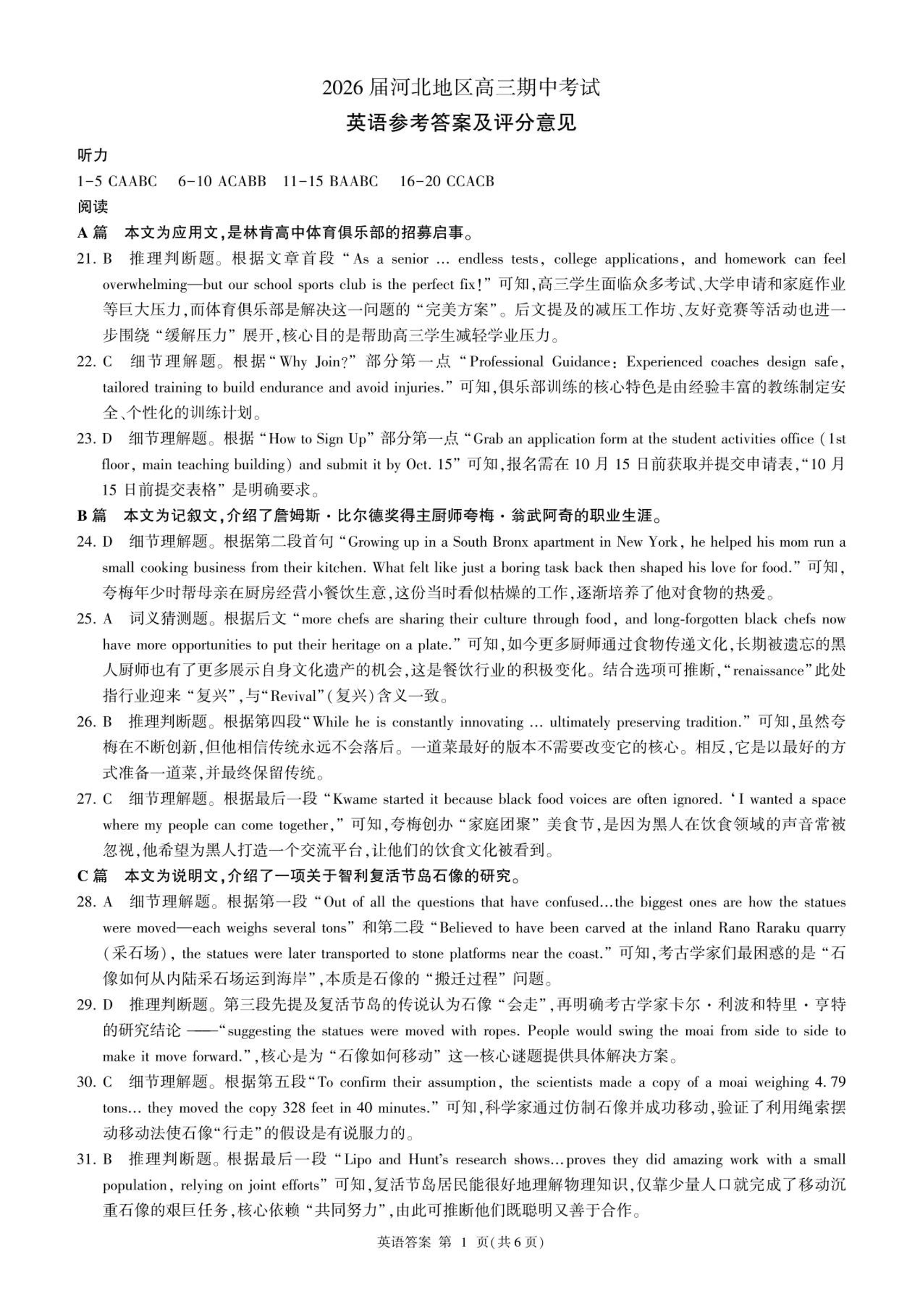 河北省百师联盟2026届高三上学期期中考试英语答案.pdf