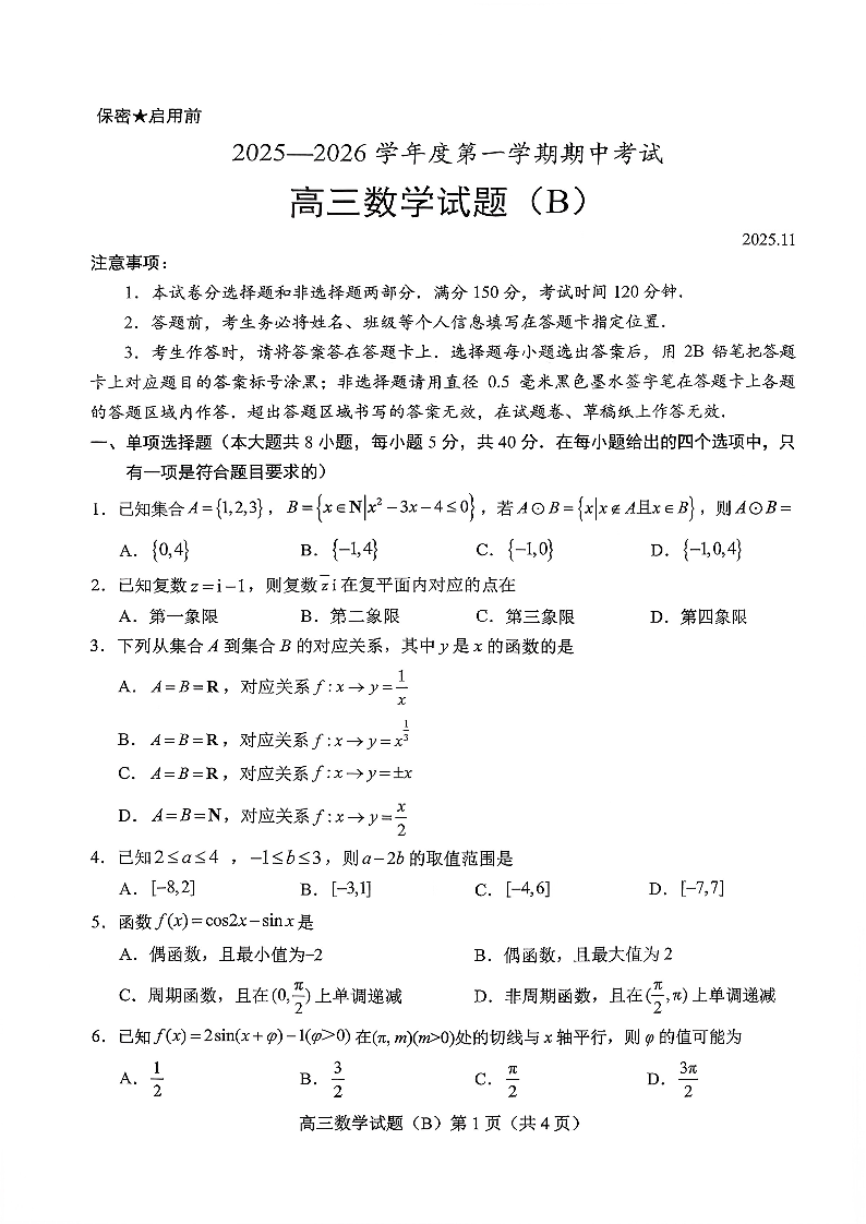 菏泽市B类高中2025-2026学年度高三第一学期期中考试数学.pdf