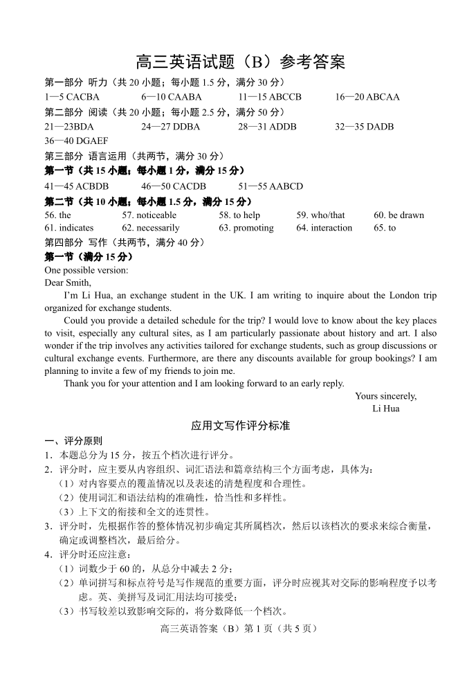 菏泽市B类高中2025-2026学年度高三第一学期期中考试英语答案.pdf