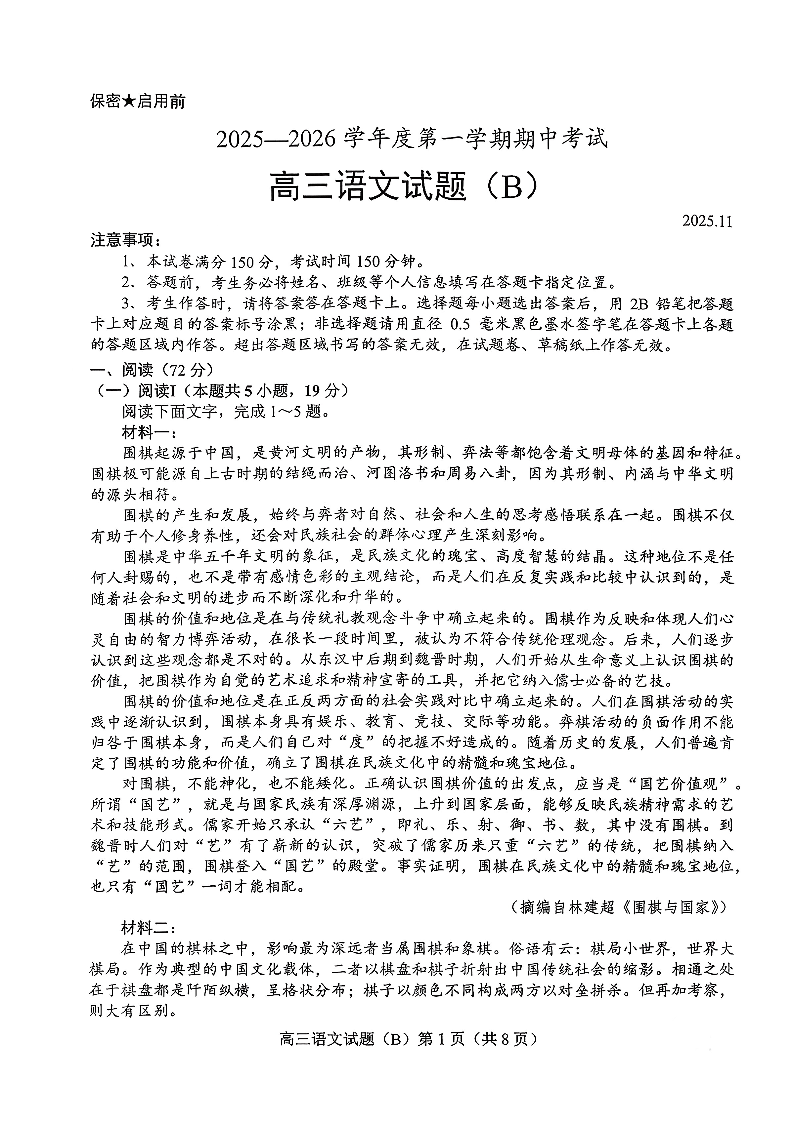 菏泽市B类高中2025-2026学年度高三第一学期期中考试语文.pdf