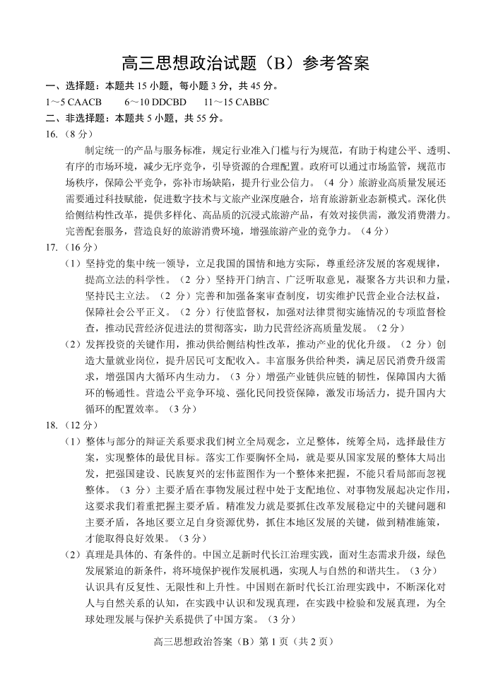 菏泽市B类高中2025-2026学年度高三第一学期期中考试政治答案.pdf