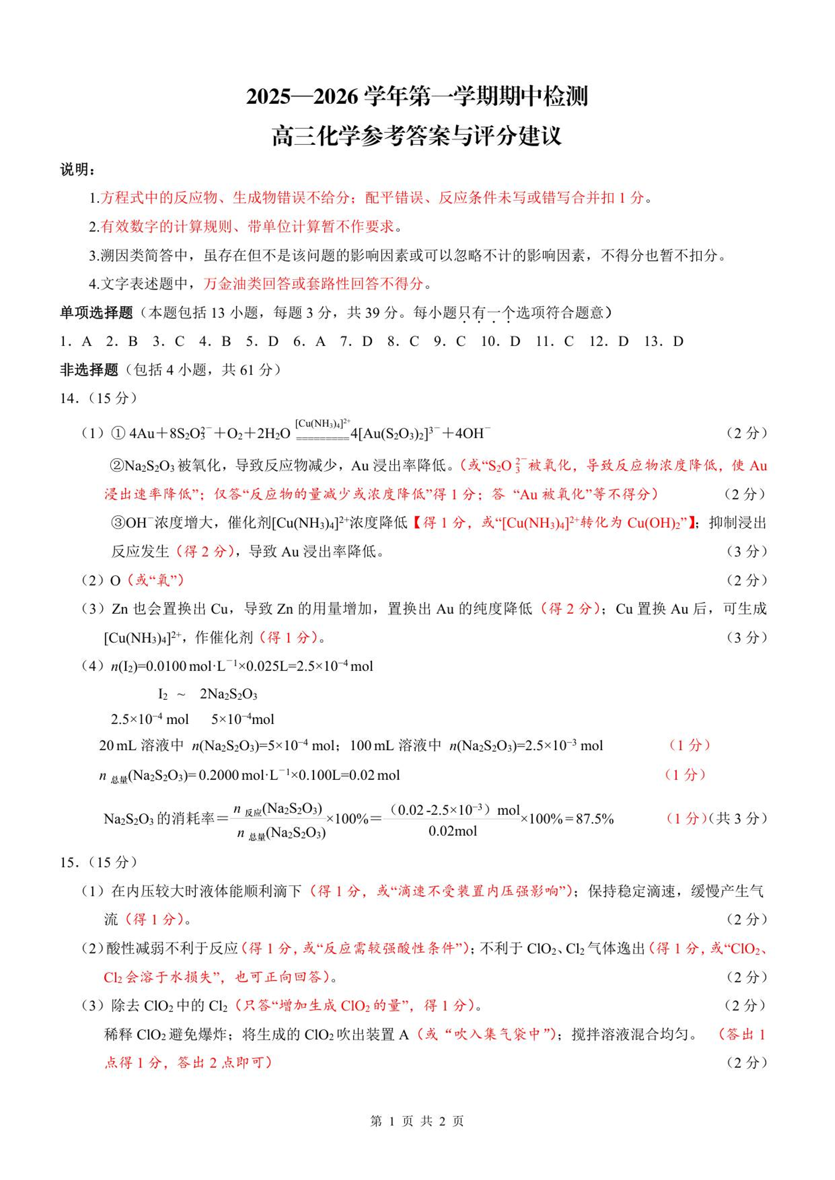 江苏省扬州市2025-2026学年高三上学期11月期中考试-化学参考答案与评分建议.pdf