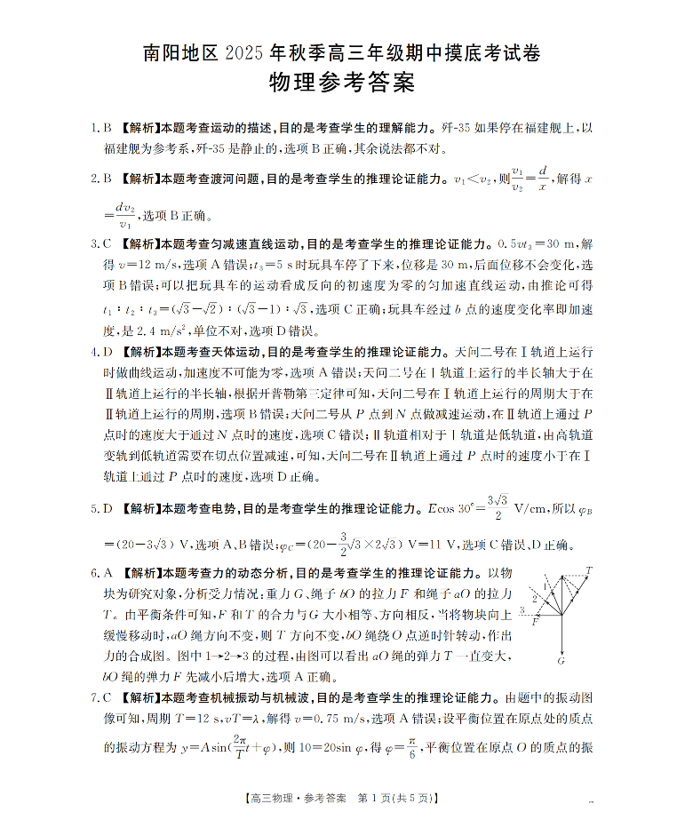 南阳市南阳地区2026届高三上学期期中摸底考试卷(26-98C)物理答案.pdf