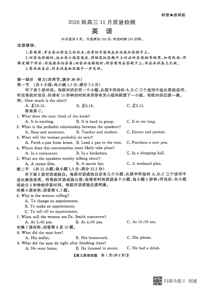 天壹名校联盟长望浏宁四县市2026届高三11月期中质量检测英语.pdf