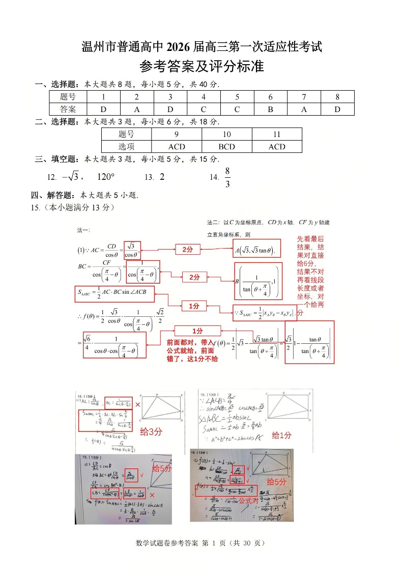 温州市普通高中2026届高三第一次适应性考试数学答案.pdf