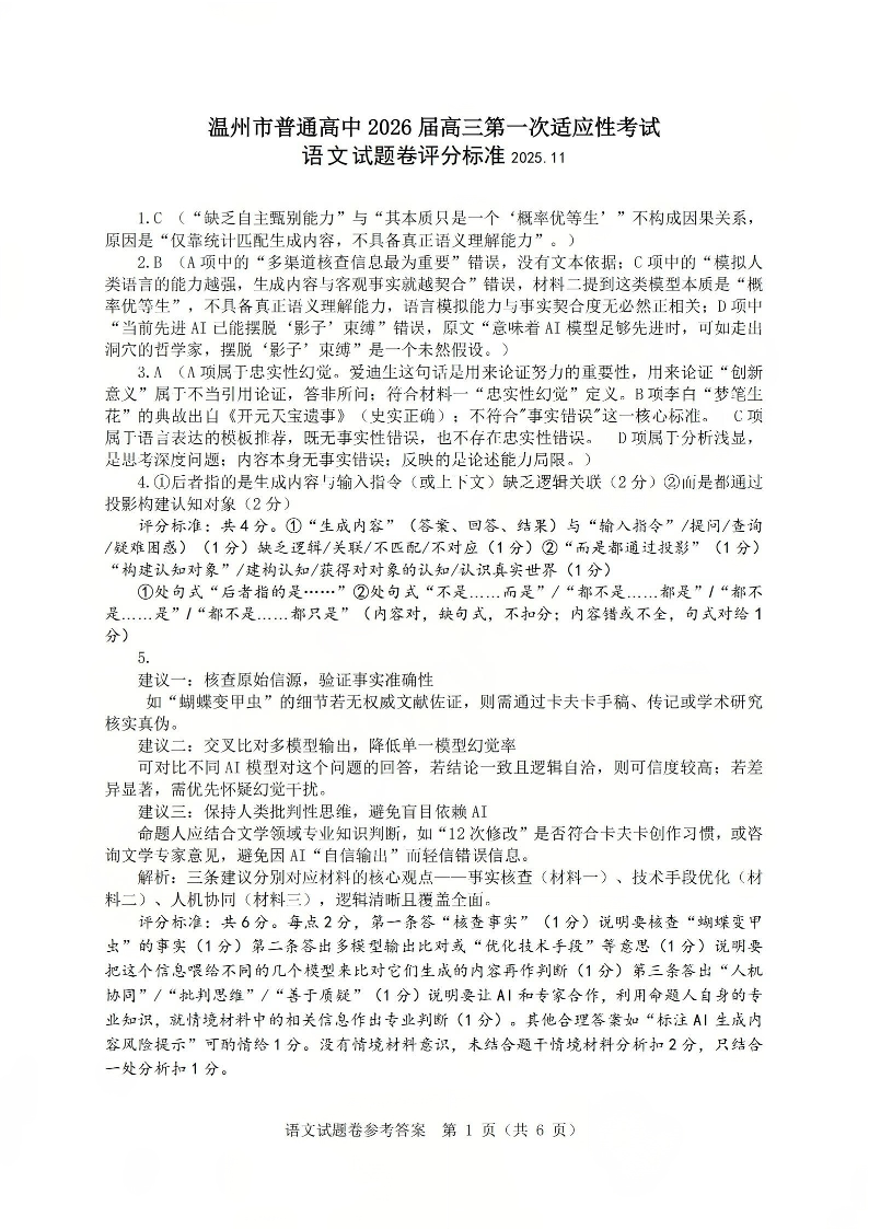 温州市普通高中2026届高三第一次适应性考试语文答案.pdf