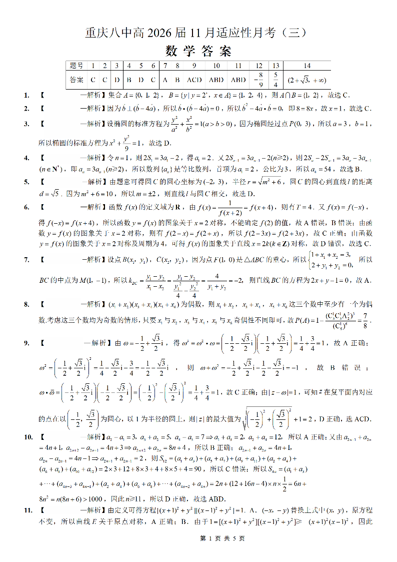 重庆市第八中学2026届高考适应性月考卷(三)数学答案.pdf