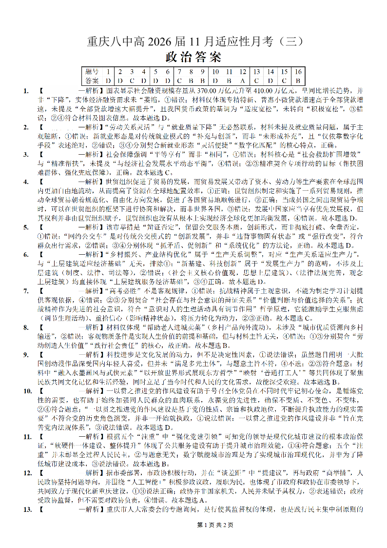 重庆市第八中学2026届高考适应性月考卷(三)政治答案.pdf