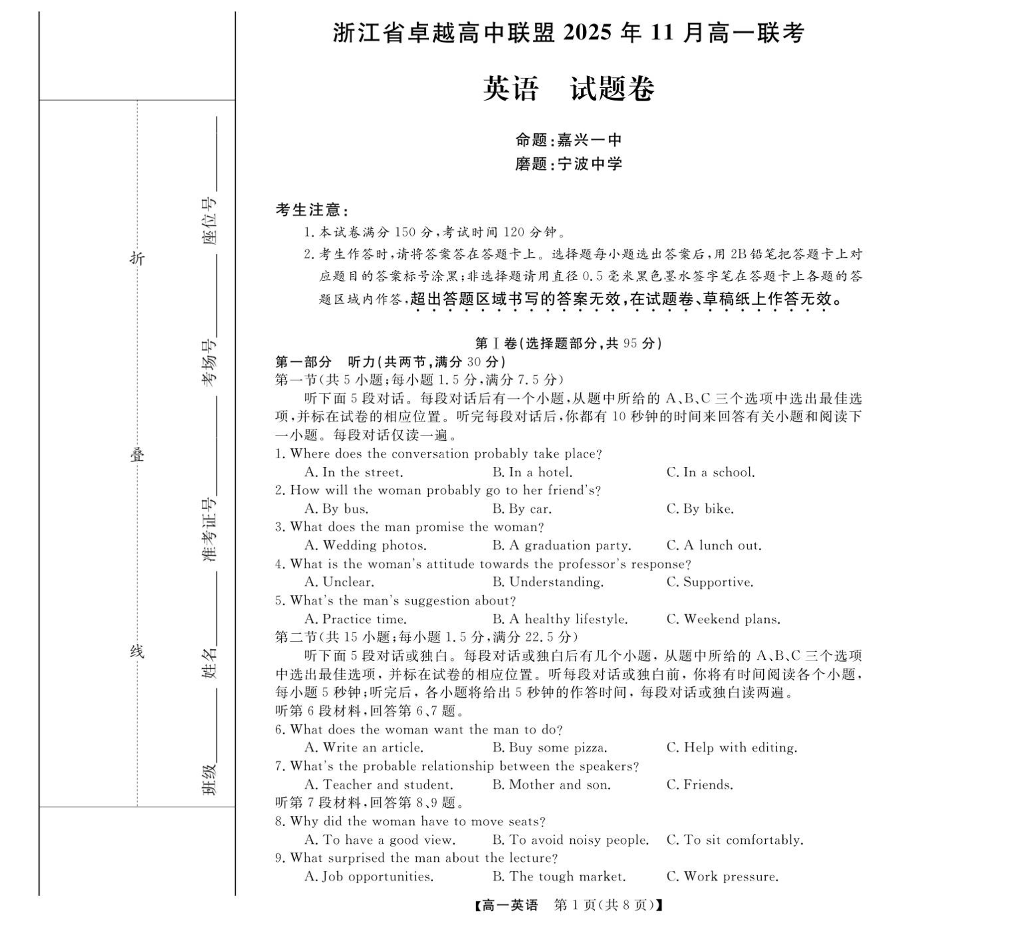 浙江省卓越高中联盟2025-2026学年高一上学期11月期中联考 英语.pdf