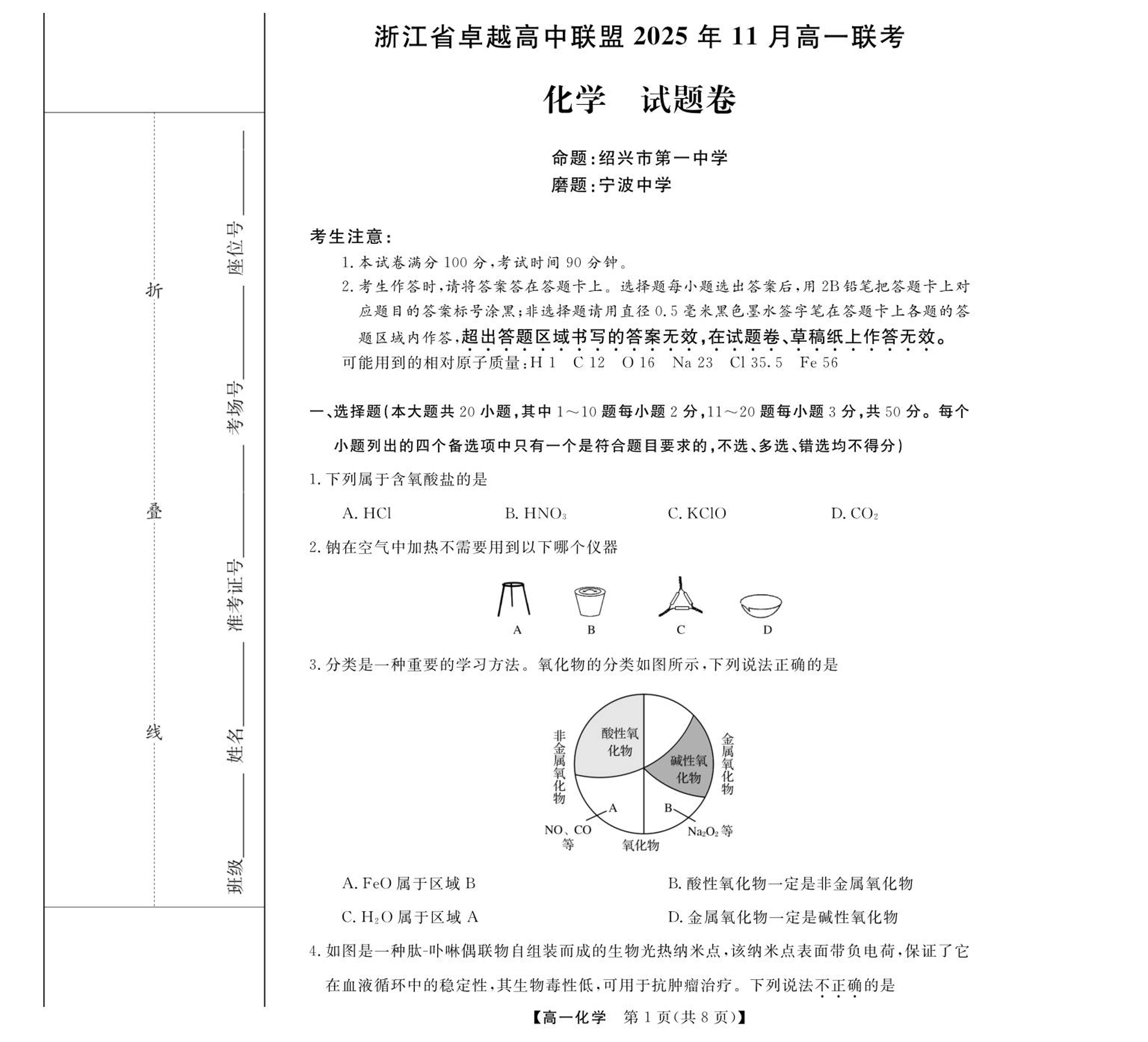 浙江省卓越高中联盟2025-2026学年高一上学期11月期中联考 化学.pdf