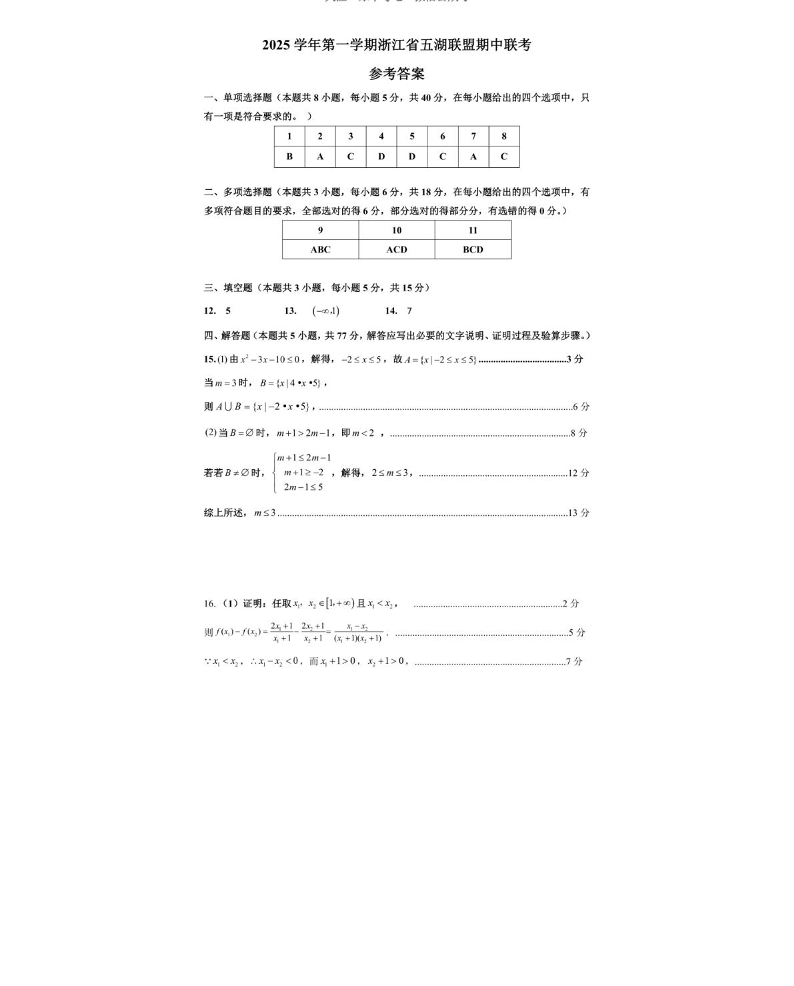 浙江省五湖联盟2025-2026学年高一上学期期中联考 数学答案.pdf