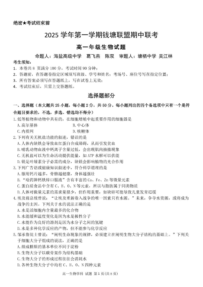 高一生物试题.pdf