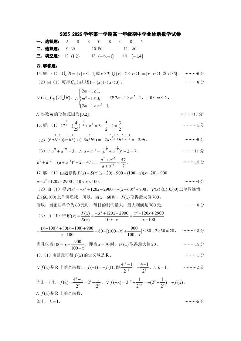 高一数学答案.pdf