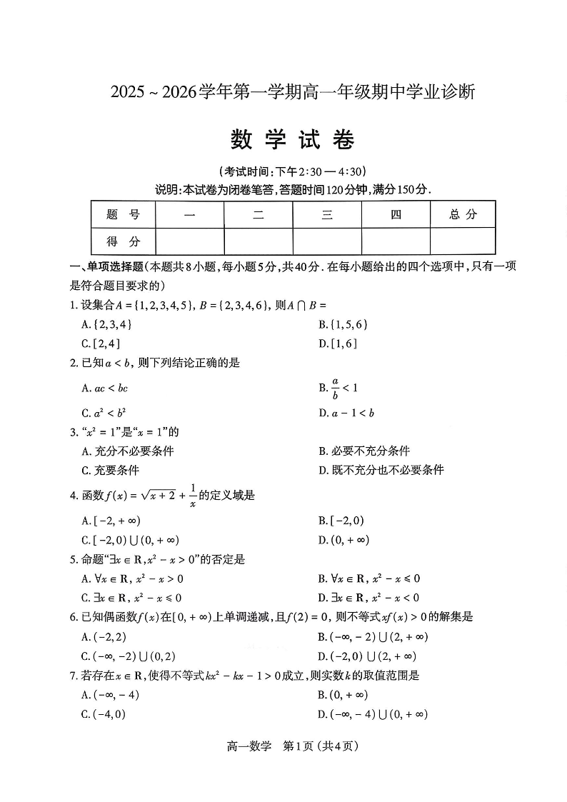 【数学】太原市2025-2026学年第一学期高一年级期中学业诊断.pdf