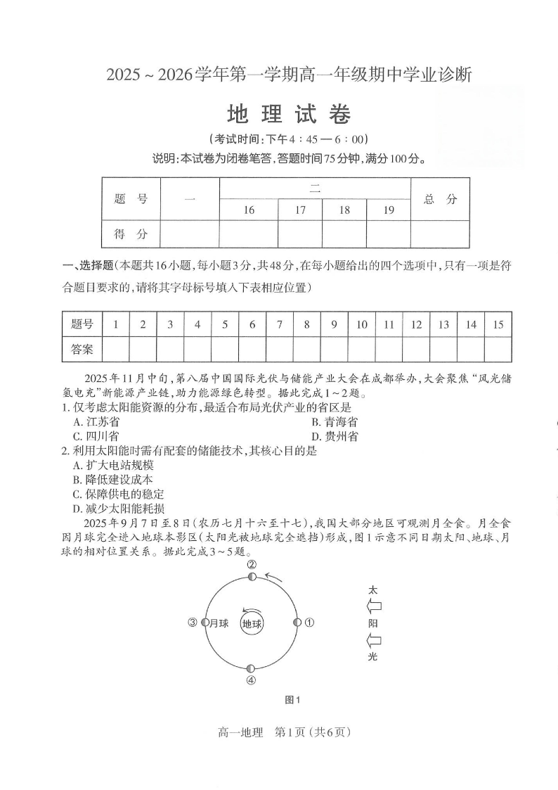 【地理】太原市2025-2026学年第一学期高一年级期中学业诊断.pdf
