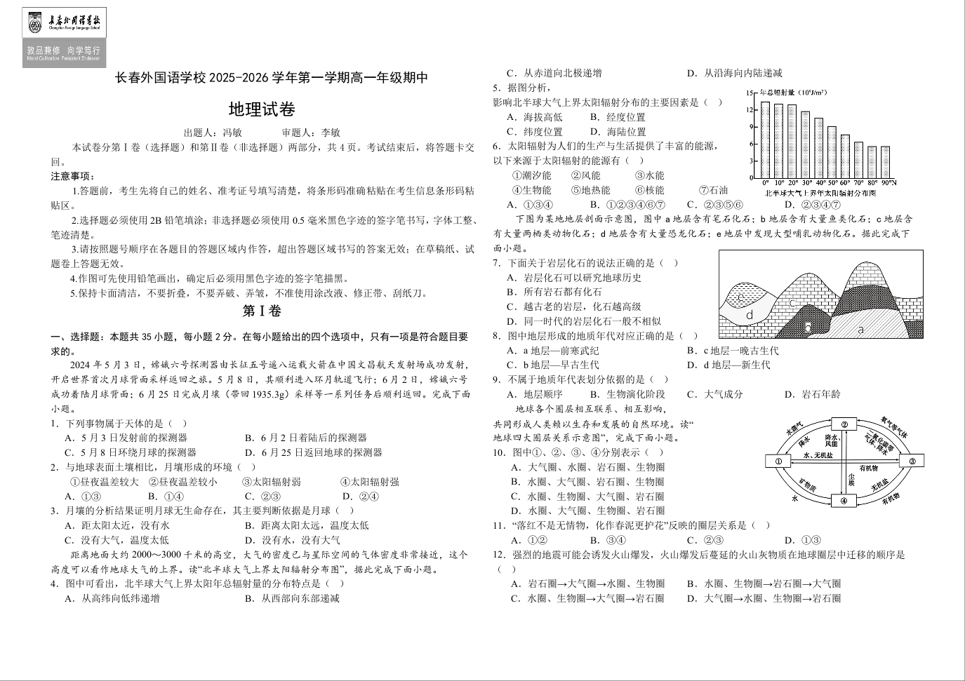 吉林省长春外国语学校2025-2026学年高一上学期期中考试 地理试题(含答案).docx