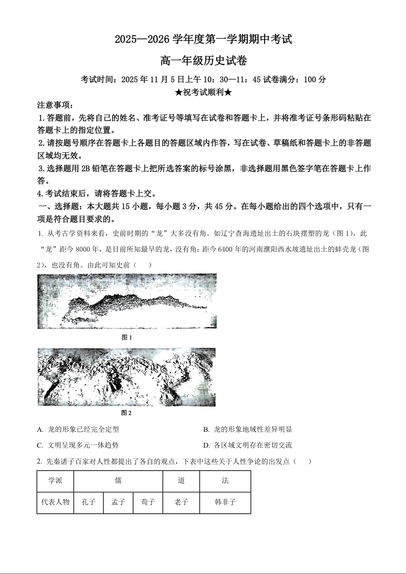 湖北省武汉市东湖高新区2025-2026学年高一上学期期中考试 历史.docx