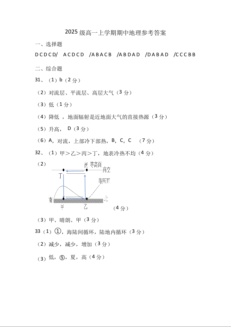 湖北省荆州中学2025-2026学年高一上学期期中考试 地理答案.docx