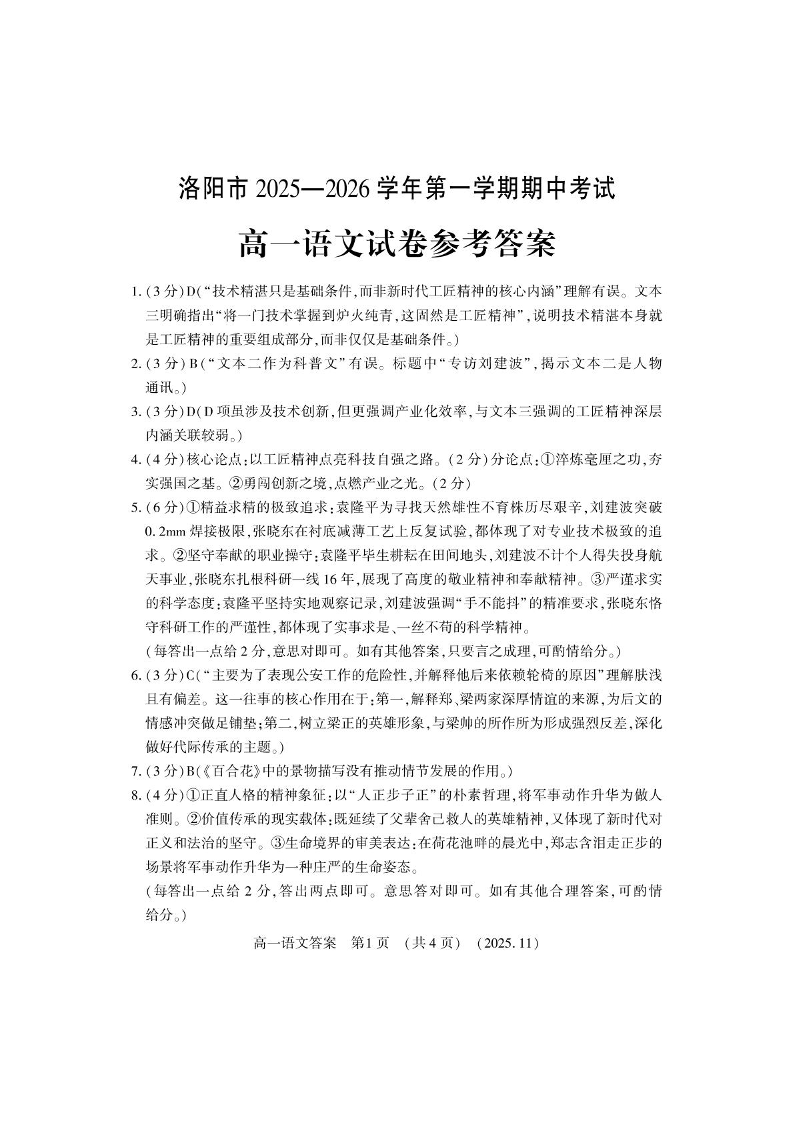河南省洛阳市2025-2026学年高一上学期期中考试 语文答案.pdf