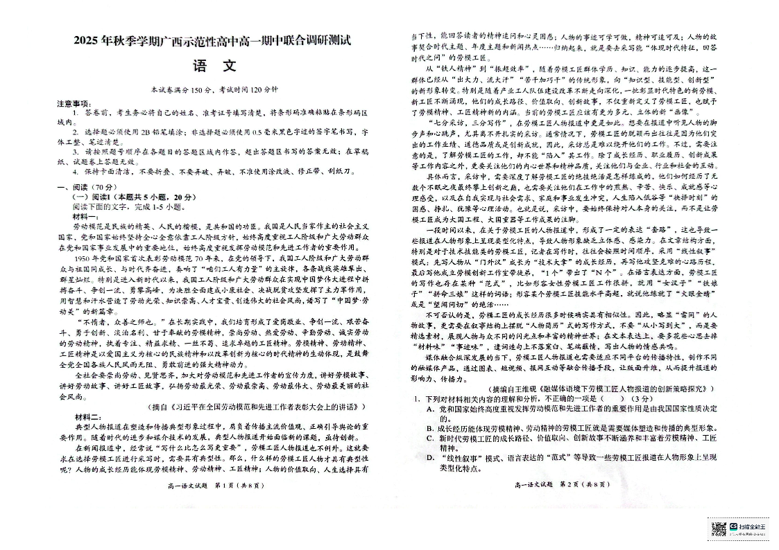 广西示高2025年秋季期中高一联考 语文.pdf