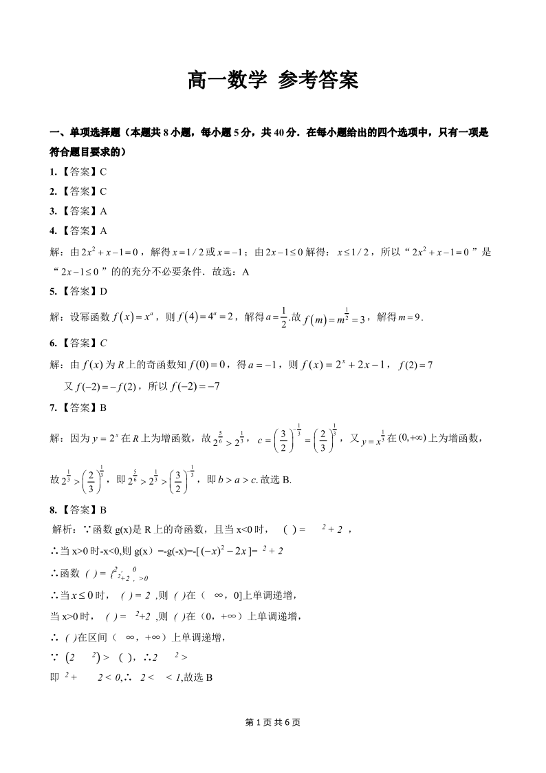 广西示高2025年秋季期中高一联考 数学答案.pdf