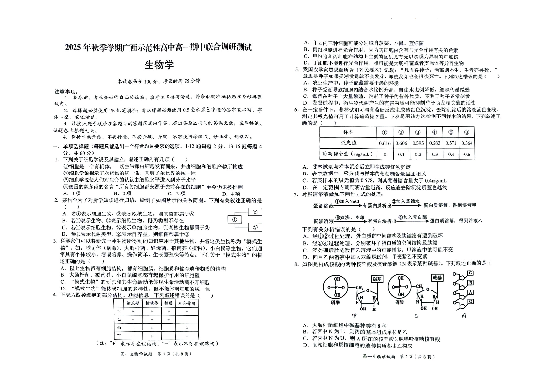 广西示高2025年秋季期中高一联考 生物.pdf
