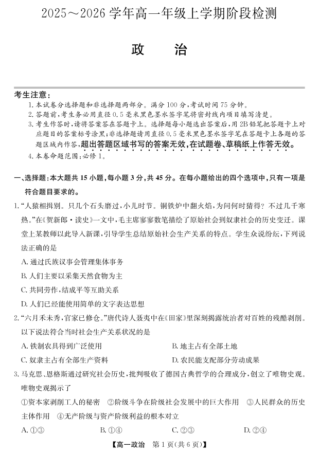 安徽省江淮名校2025-2026学年高一上学期阶段联考-政治.pdf