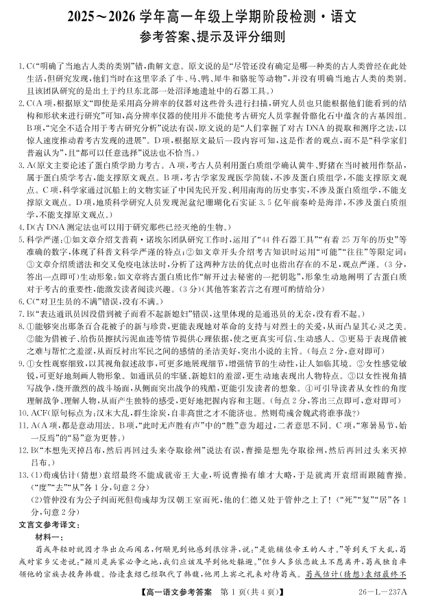 安徽省江淮名校2025-2026学年高一上学期阶段联考-语文答案.pdf