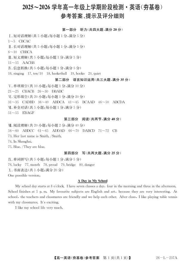 安徽省江淮名校2025-2026学年高一上学期阶段联考-英语(夯基卷)答案.pdf