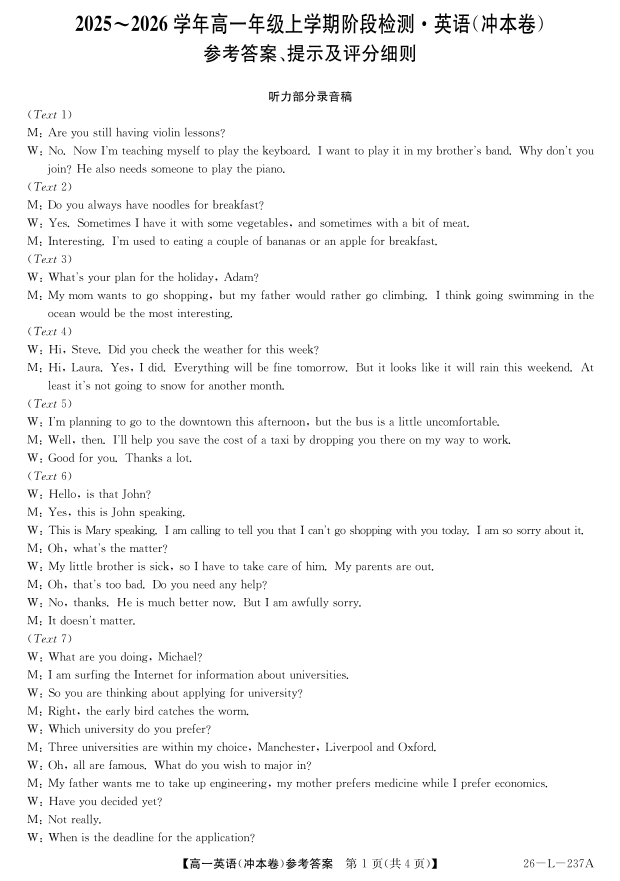 安徽省江淮名校2025-2026学年高一上学期阶段联考-英语(冲本卷)答案.pdf