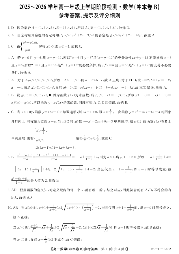 安徽省江淮名校2025-2026学年高一上学期阶段联考-数学答案(冲本卷B).pdf