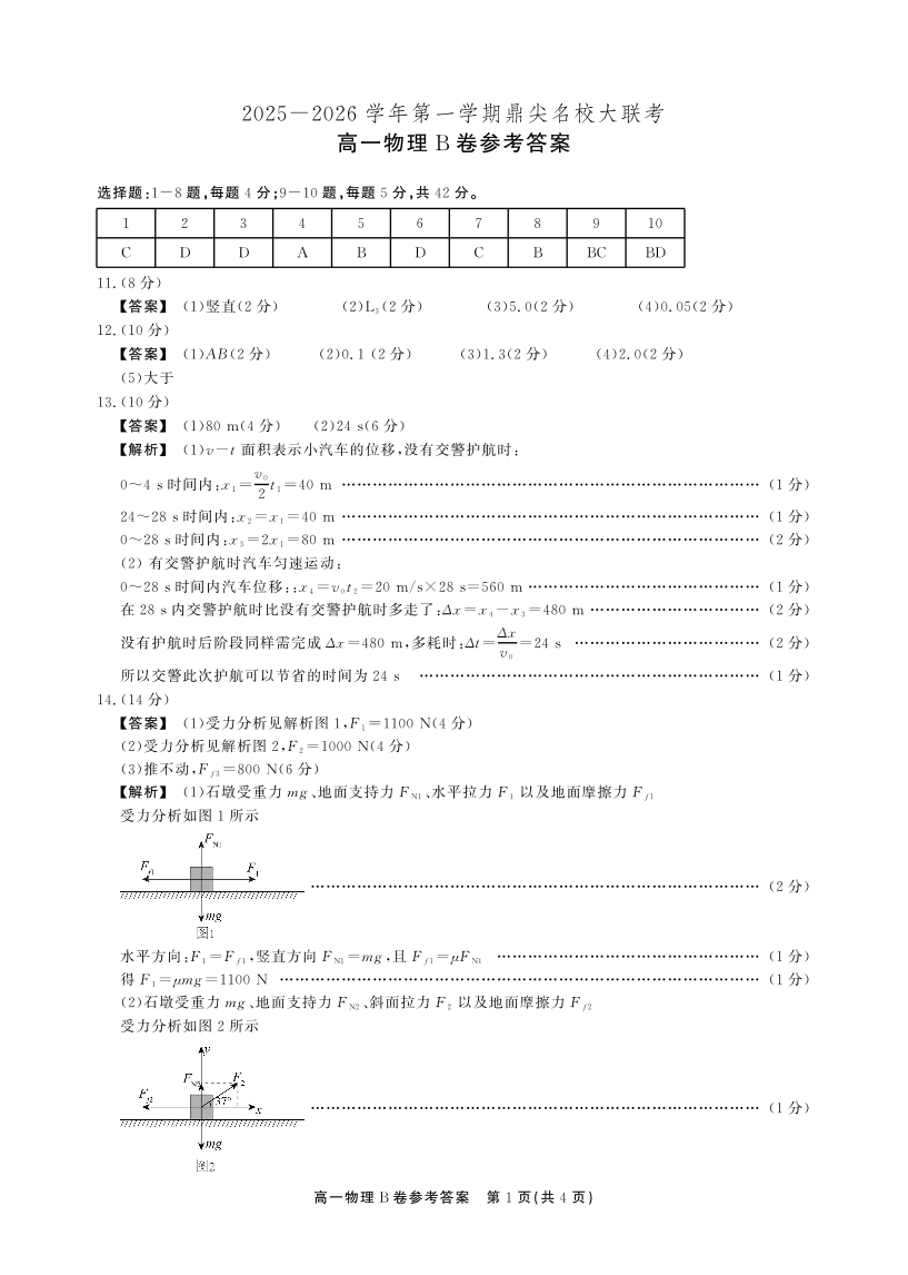 【物理B卷答案】安徽省鼎尖名校大联考2025-2026学年上学期高一11月期中考试.pdf