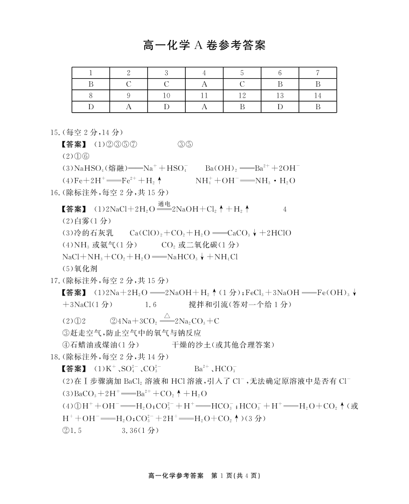 【化学A卷答案】安徽省鼎尖名校大联考2025-2026学年上学期高一11月期中考试.pdf