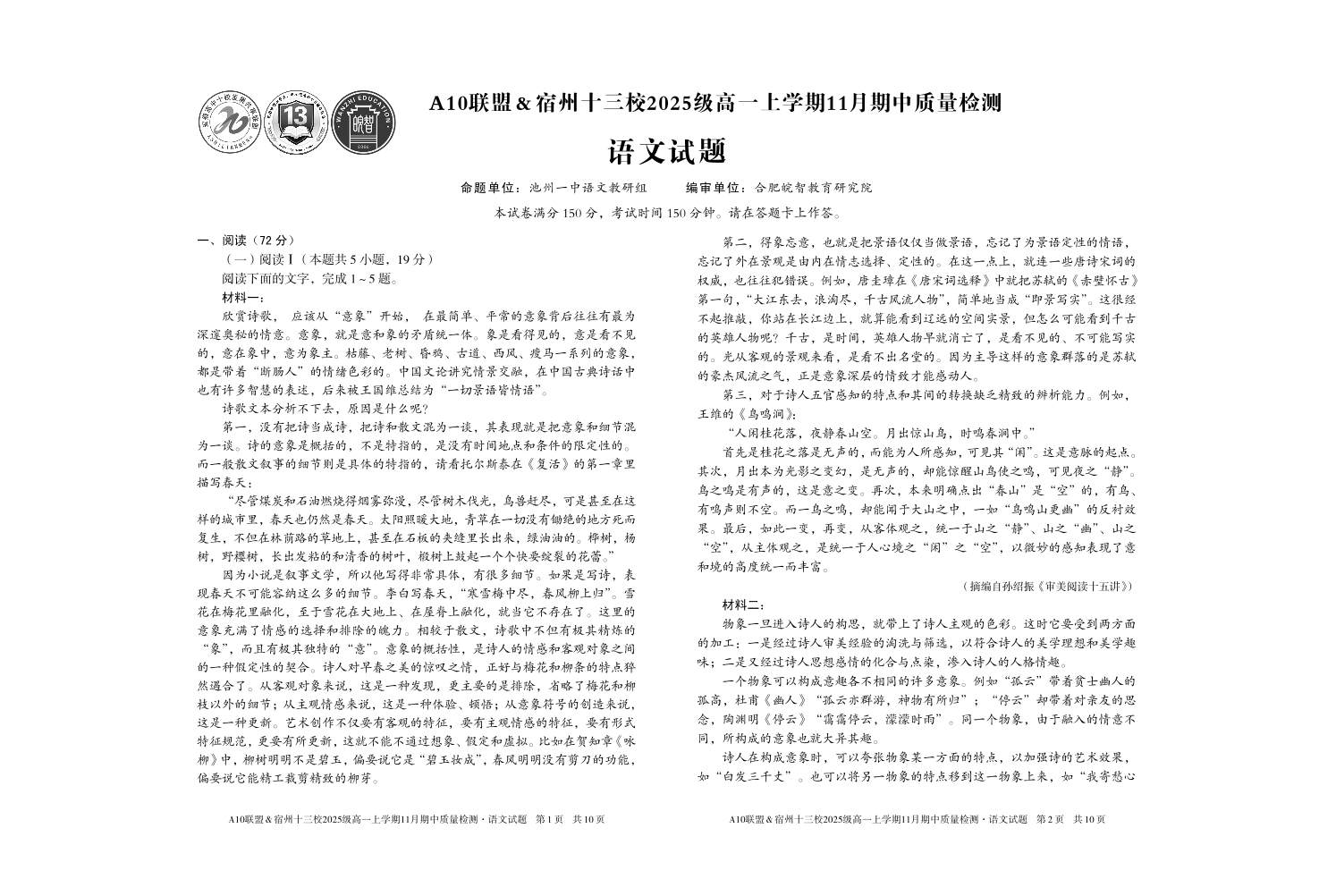 【语文】A10联盟&宿州十三校2025级高一上学期11月期中质量检测语文.pdf