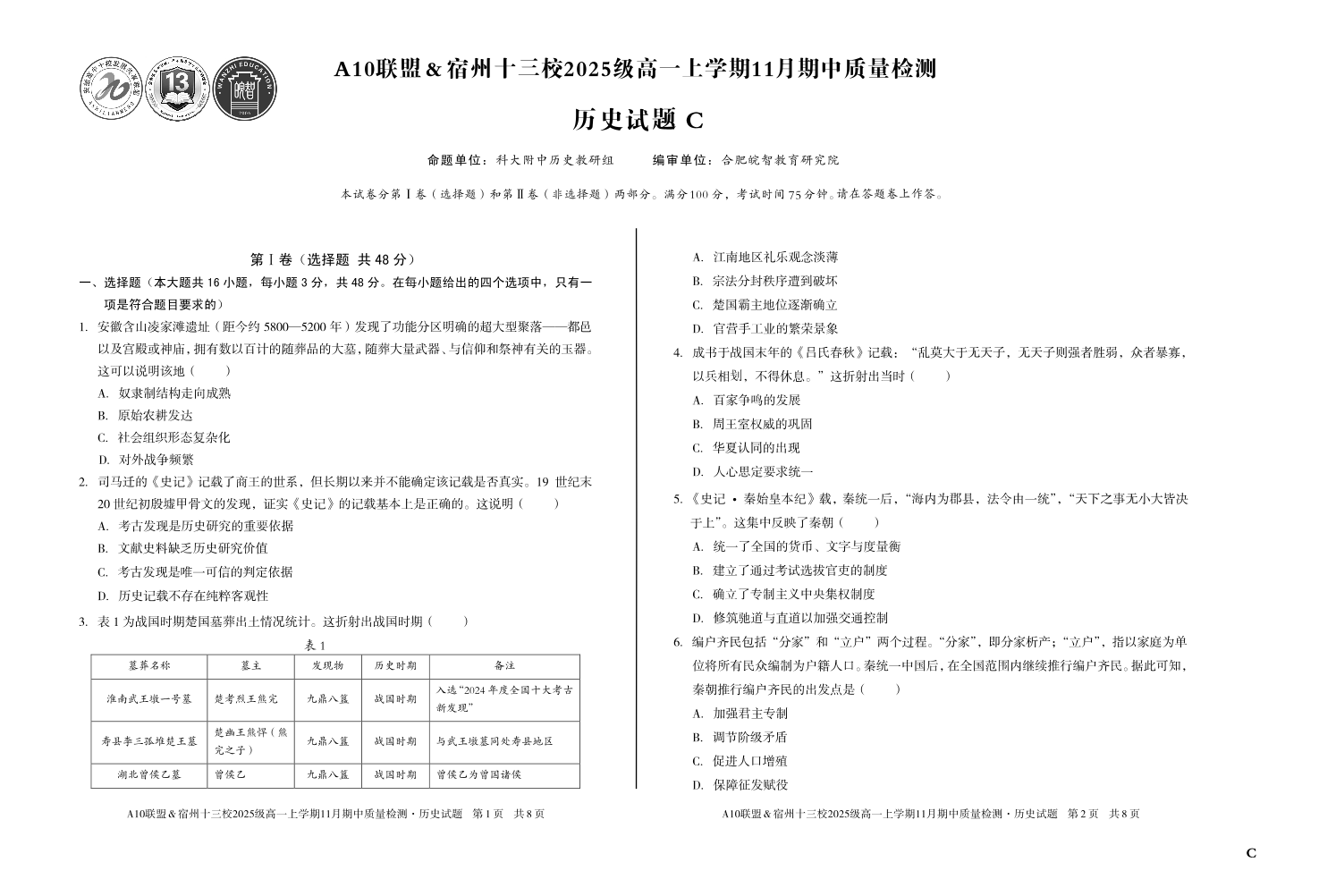 【历史】(C卷)A10联盟&宿州十三校2025级高一上学期11月期中质量检测历史C.pdf