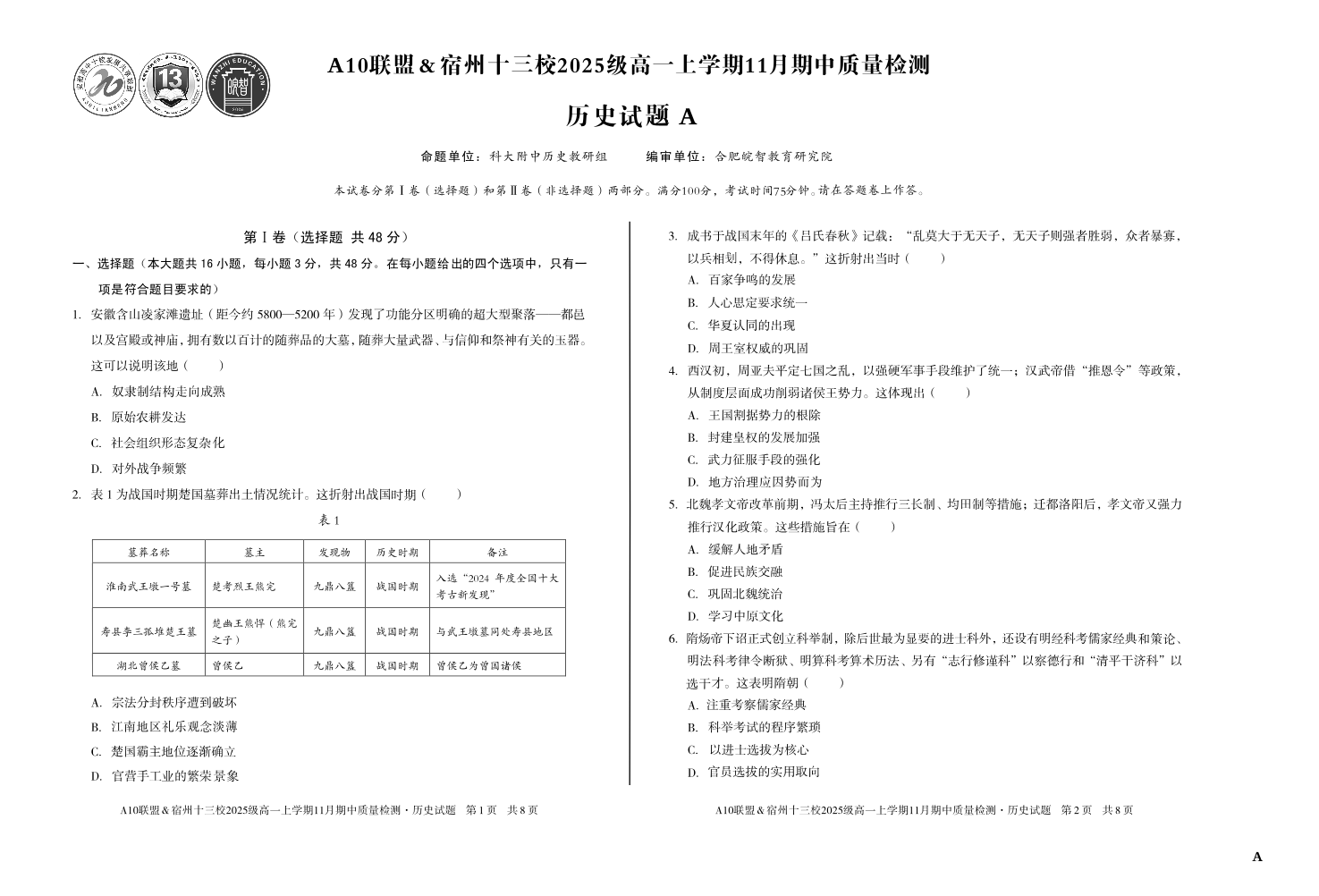 【历史】(A卷)A10联盟&宿州十三校2025级高一上学期11月期中质量检测历史A.pdf