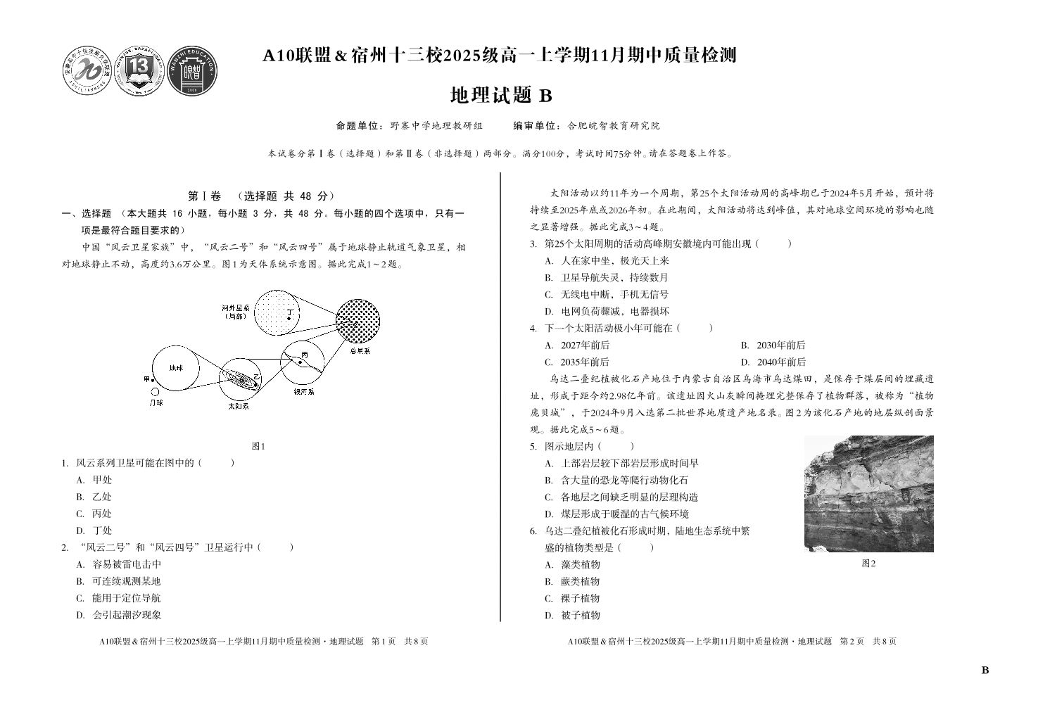 【地理】(B卷)A10联盟&宿州十三校2025级高一上学期11月期中质量检测地理B.pdf