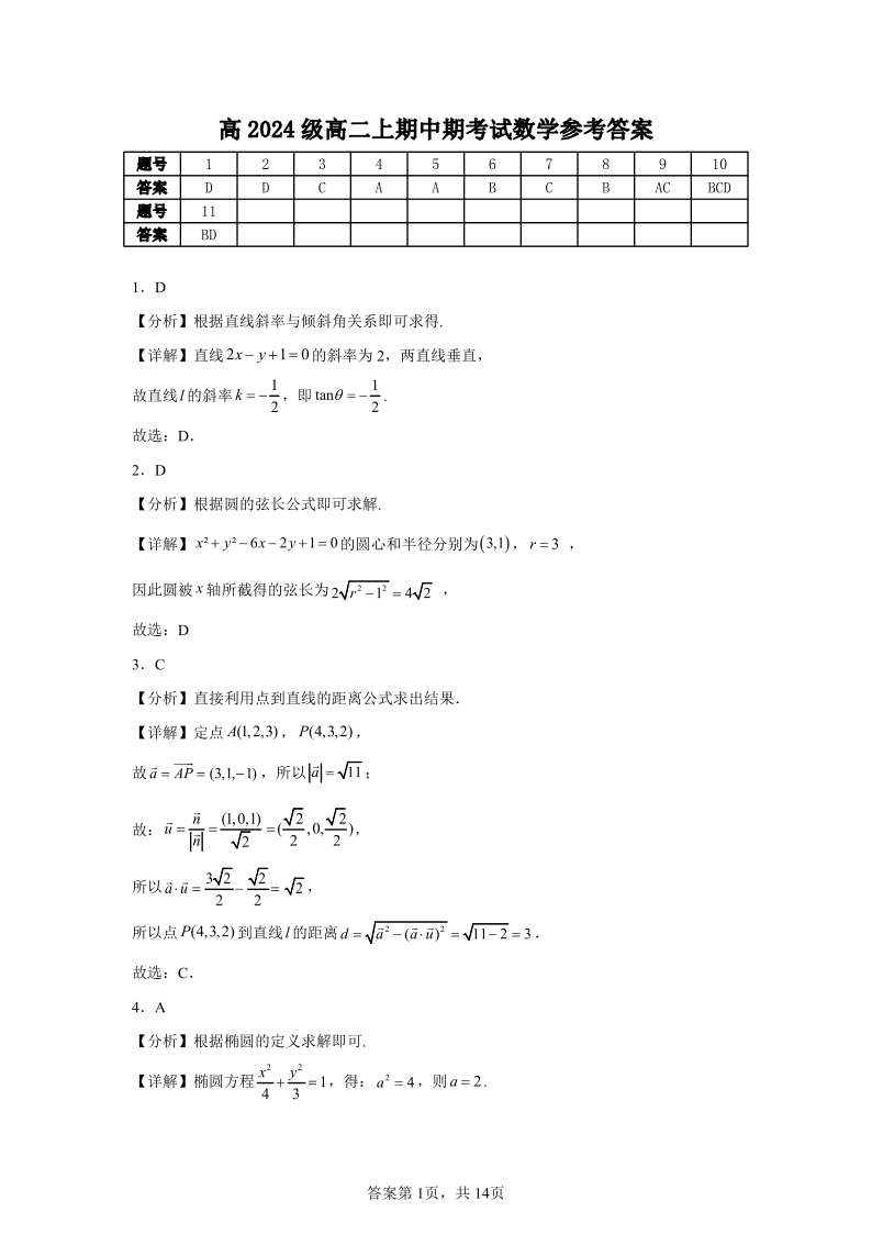 重庆市万州二中2025-2026学年高二上学期期中考试 数学答案.pdf