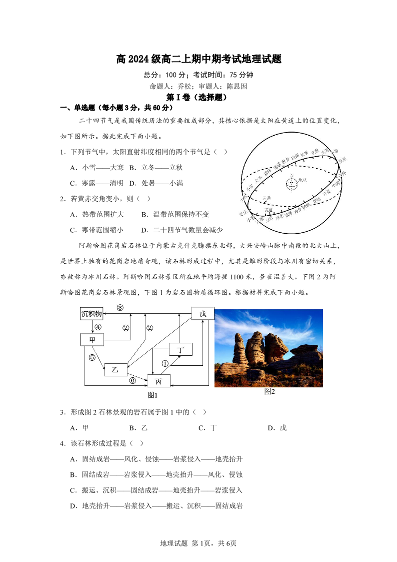 重庆市万州二中2025-2026学年高二上学期期中考试 地理.pdf
