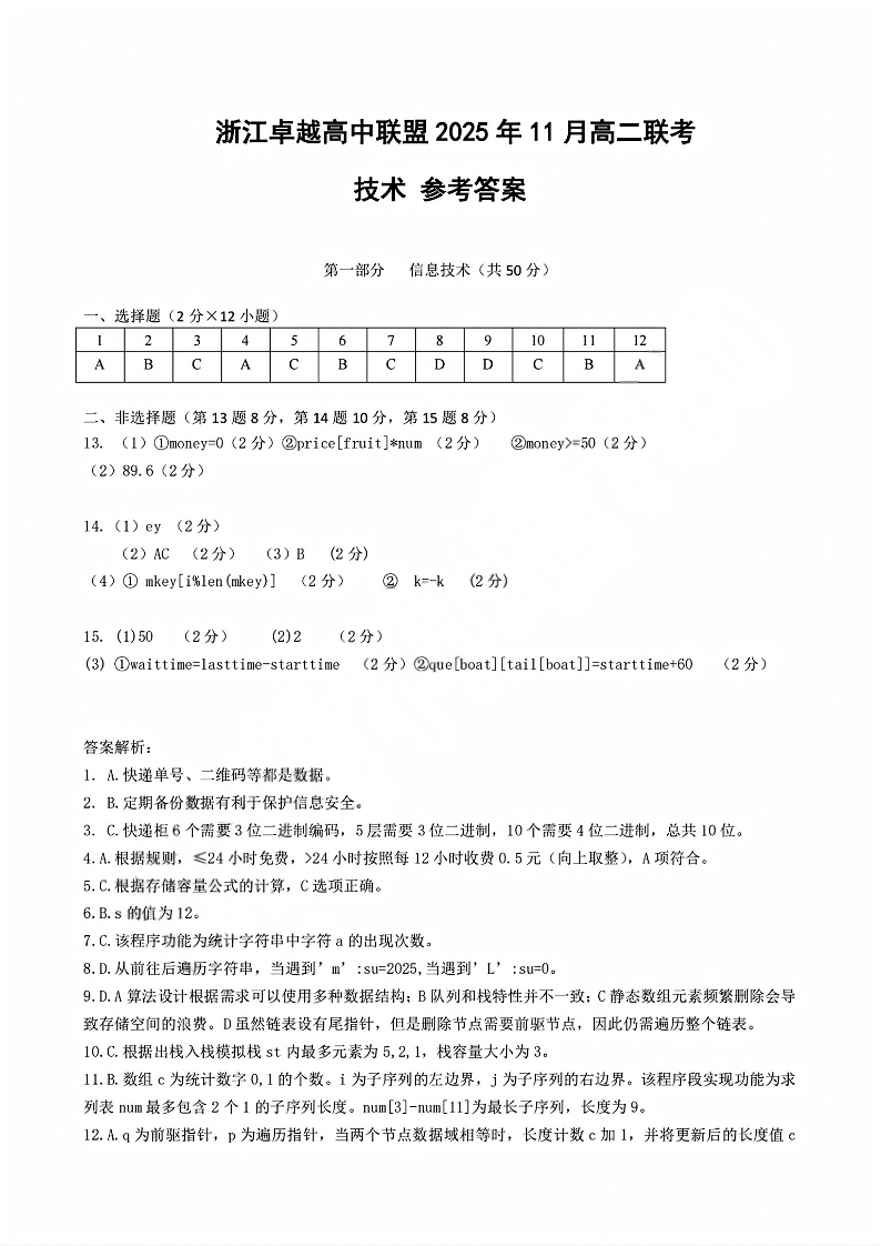 浙江省卓越高中联盟2025-2026学年高二上学期11月期中联考 技术答案.pdf