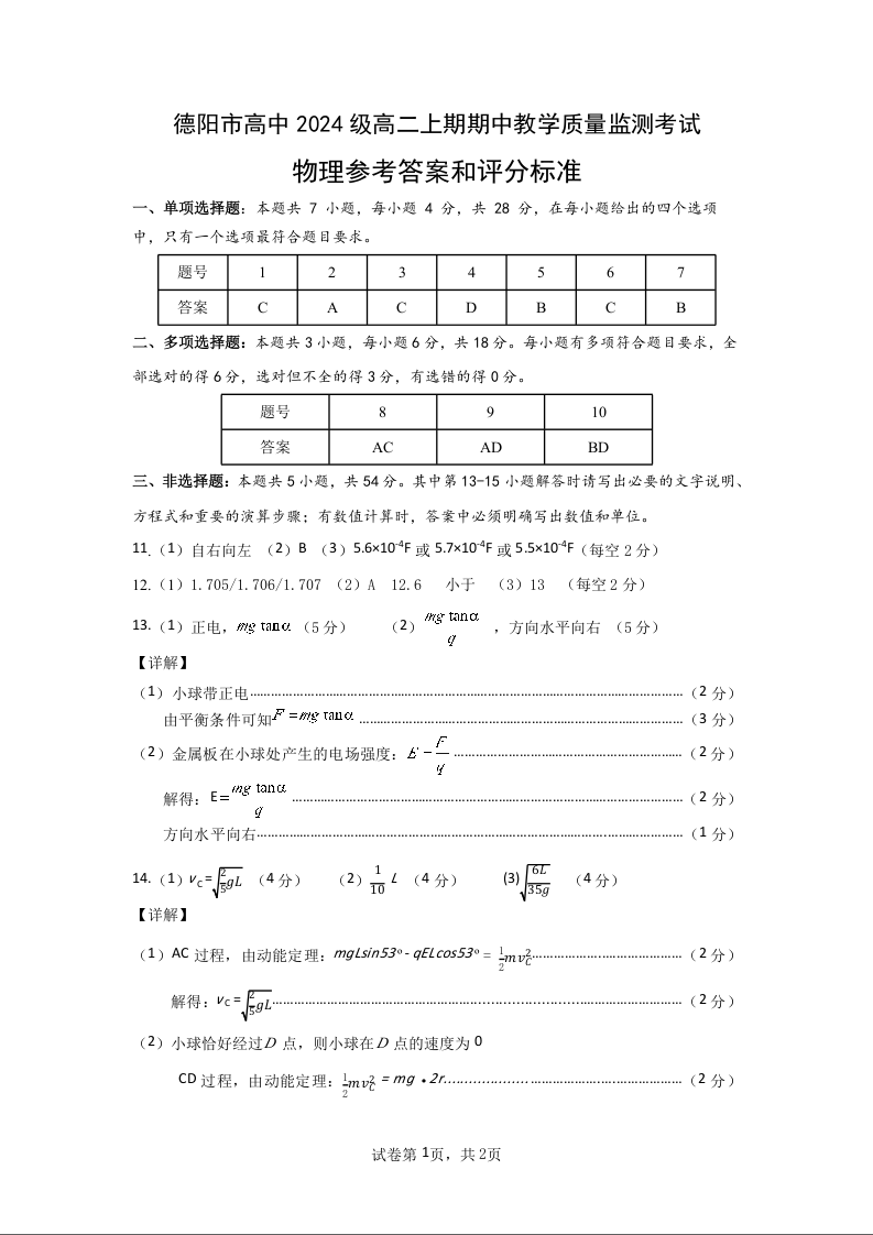 四川省德阳市2025-2026学年高二上学期期中考试 物理答案.docx